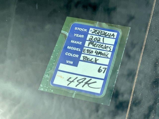 ** PETERS CERTIFIED PRE-OWNED (4 MONTH / 4,000 MILE LIMITED WARRANTY / 2 COMPLIMENTARY OIL CHANGES.This 2021 Mercedes-Benz E-Class E 350 4MATIC in Black comes with the following features: I4 9-Speed Automatic 4MATIC Memory Package w/Power Steering Column, 4-Way Power Lumbar Support, 4-Wheel Disc Brakes, 8 Speakers, ABS brakes, Air Conditioning, Alloy wheels, Android Auto, Anti-whiplash front head restraints, Apple CarPlay, Apple CarPlay/Android Auto, Auto tilt-away steering wheel, Auto-dimming door mirrors, Auto-dimming Rear-View mirror, Automatic temperature control, Brake assist, Bumpers: body-color, Delay-off headlights, Driver door bin, Driver vanity mirror, Dual front impact airbags, Dual front side impact airbags, Electronic Stability Control, Emergency communication system: Mercedes me connect, Exterior Parking Camera Rear, Four wheel independent suspension, Front anti-roll bar, Front Bucket Seats, Front Center Armrest, Front dual zone A/C, Front reading lights, Fully automatic headlights, Garage door transmitter: HomeLink, Genuine wood console insert, Genuine wood dashboard insert, Genuine wood door panel insert, HD-Radio, Head restraints memory, Heated door mirrors, Heated Front Seats, Heated front seats, Illuminated entry, Knee airbag, Leather Shift Knob, Low tire pressure warning, MB Navigation, MB-Tex Upholstery, Memory seat, Navigation system: MBUX, Occupant sensing airbag, Outside temperature display, Overhead airbag, Overhead console, Panic alarm, Passenger door bin, Passenger vanity mirror, Power adjustable front head restraints, Power adjustable rear head restraints, Power door mirrors, Power driver seat, Power moonroof, Power passenger seat, Power steering, Power windows, Radio data system, Radio: MBUX Infotainment System w/Navigation, Rain sensing wipers, Rear anti-roll bar, Rear fog lights, Rear reading lights, Rear seat center armrest, Rear window defroster, Remote keyless entry, Security system, Smartphone Integration, Speed control, Speed-sensing steering, Split folding rear seat, Steering wheel memory, Steering wheel mounted audio controls, Tachometer, Telescoping steering wheel, Tilt steering wheel, Traction control, Trip computer, Turn signal indicator mirrors, Variably intermittent wipers, Weather band radio, and Wheels: 18" x 8.0" Twin 5-Spoke.Odometer is 9882 miles below market average! 22/30 City/Highway MPG*** Let the team at Peters introduce you to an entirely new kind of car-buying experience. Call us at 877-615-3187. **NATIONWIDE DELIVERY AVAILABLE**