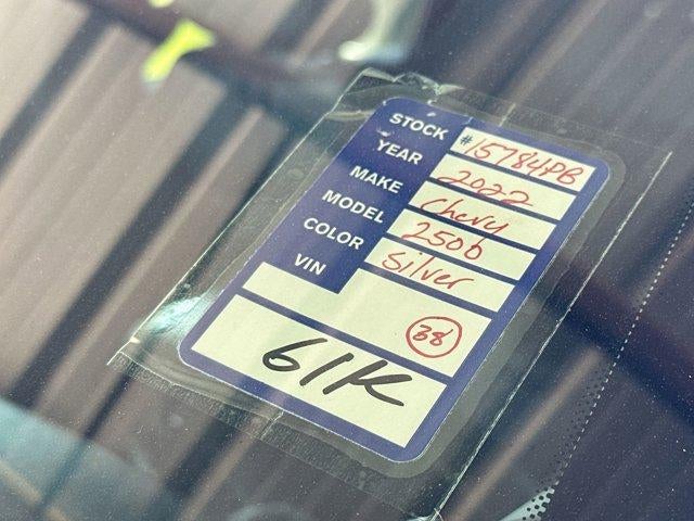 Clean CARFAX.This 2022 Chevrolet Silverado 2500HD High Country in Silver Ice Metallic comes with the following features: 6.6L V8 6-Speed Automatic 4WD Preferred Equipment Group 3LZ (12-Volt Rear Auxiliary Power Outlet, 120-Volt Bed Mounted Power Outlet, 120-Volt Instrument Panel Power Outlet, 170 Amp Alternator, 6" Rectangular Chromed Tubular Assist Steps, 8" Driver Information Center, Advanced Trailering System, Auto-Dimming Inside Rear-View Mirror, Bed View Camera w/2 Trailer Camera Provisions, Black Chevytec Spray-On Bedliner w/Chevrolet Logo, Bluetooth® For Phone, Chevrolet Connected Access Capable, Chrome Front Grille, Chrome Mirror Caps, Color-Keyed Carpeting Floor Covering, Compass, Deep-Tinted Glass, Dual Charge-Only USB Ports (2nd Row), Electric Rear-Window Defogger, Electrical Lock Control Steering Column, Electronic Cruise Control w/Set & Resume Speed, Front Carpeted Floor Mats, Front Chrome Recovery Hooks, Front LED Fog Lamps, HD Surround Vision w/2 Trailer View Camera Provisions, Heated & Auto-Dim Pwr Vertical Trailering Mirrors, Heated Steering Wheel, Hitch Guidance w/Hitch View, Integrated Trailer Brake Controller, Keyless Open & Start, Lane Change Alert w/Side Blind Zone Alert, Leather-Wrapped Steering Wheel, LED Cargo Area Lighting, Manual Tilt & Telescoping Steering Column, OnStar & Chevrolet Connected Services Capable, Polished Exhaust Tip, Power Door Locks, Power Front Windows w/Driver Express Up/Down, Power Front Windows w/Passenger Express Up/Down, Power Rear Windows w/Express Down, Power Sliding Rear Window w/Defogger, Rear Carpeted Floor Mats, Rear Cross Traffic Alert, Rear Wheelhouse Liners, Remote Vehicle Starter System, SiriusXM w/360L, Standard Tailgate, Steering Wheel Audio Controls, Ultrasonic Front & Rear Park Assist, Unauthorized Entry Theft-Deterrent System, Universal Home Remote, Wi-Fi Hotspot Capable, Wireless Charging, and Wireless Phone Projection), Suspension Package, Up-Level Rear Seat w/Storage Package, Z71 Off-Road Package (Hill Descent Control and Off-Road Suspension), 10-Way Power Driver Seat Adjuster w/Lumbar, 10-Way Power Passenger Seat Adjuster w/Lumbar, 1st & 2nd Row All-Weather Floor Liners (LPO) (AAK), 3.73 Rear Axle Ratio, 4-Wheel Disc Brakes, 5th Wheel & Gooseneck Trailer Wiring Provisions, 7 Speakers, 720 Cold-Cranking Amps Heavy-Duty Battery, ABS brakes, Air Conditioning, Alloy wheels, AM/FM radio: SiriusXM with 360L, Auto-dimming door mirrors, Auto-dimming Rear-View mirror, Automatic temperature control, BOSE Premium 7-Speaker Sound System, Brake assist, Bumpers: body-color, Delay-off headlights, Driver door bin, Driver Memory, Driver vanity mirror, Dual front impact airbags, Dual front side impact airbags, Electronic Stability Control, Exterior Parking Camera Rear, Floor-Mounted Center Console, Front anti-roll bar, Front Bucket Seats, Front Center Armrest, Front dual zone A/C, Front fog lights, Front License Plate Kit, Front reading lights, Front wheel independent suspension, Fully automatic headlights, Garage door transmitter, Heated door mirrors, Heated Driver & Front Outboard Passenger Seating, Heated front seats, Heated steering wheel, Illuminated entry, Low tire pressure warning, Memory seat, Navigation System, Not Equipped w/Heated 2nd Row Outboard Seats, Occupant sensing airbag, Outside temperature display, Overhead airbag, Overhead console, Panic alarm, Passenger door bin, Passenger vanity mirror, Perforated Leather-Appointed Seat Trim, Power door mirrors, Power driver seat, Power passenger seat, Power steering, Power windows, Premium audio system: Chevrolet Infotainment 3 Premium, Radio: Chevrolet Infotainment 3 Premium System, Rear reading lights, Rear seat center armrest, Rear step bumper, Rear window defroster, Remote keyless entry, Security system, Speed control, Speed-sensing steering, Split folding rear seat, Steering wheel mounted audio controls, Tachometer, Telescoping steering wheel, Tilt steering wheel, Traction control, Trip computer, Turn