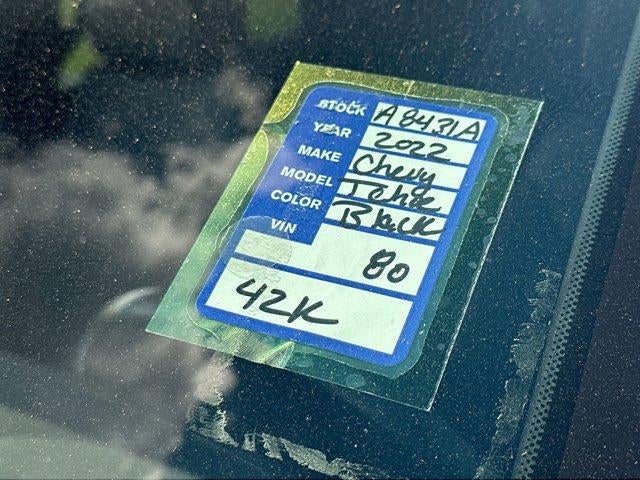 Certified. Clean CARFAX. ** CERTIFIED PRE-OWNED.Chevrolet Certified Pre-Owned Details:* Vehicle History* Limited Warranty: 12 Month/12,000 Mile (whichever comes first) from certified purchase date* Transferable Warranty* Powertrain Limited Warranty: 72 Month/100,000 Mile (whichever comes first) from original in-service date* 172 Point Inspection* 24 months/24,000 miles (whichever comes first) Certified Pre-Owned Scheduled Maintenance Plan and 3 days/150 miles (whichever comes first) Vehicle Exchange Program. SiriusXM 3-month trial subscription.* Warranty Deductible: $0* Roadside AssistanceThis 2022 Chevrolet Tahoe LT in Black comes with the following features: EcoTec3 5.3L V8 10-Speed Automatic with Overdrive 4WD Preferred Equipment Group 1LT (1st & 2nd Row Color-Keyed Carpeted Floor Mats, Auto-Dimming Inside Rear-View Mirror, Automatic Stop/Start, Bose 9-Speaker Stereo Audio System Feature, Bright Front & Rear Door Sill Plates, Color-Keyed Carpeting Floor Covering, Driver & Front Outboard Passenger Airbags, Enhanced Driver Information Center, Floor Console w/Storage Area, Hands-Free Rear Power Programmable Liftgate, Infotainment Display, Leather-Wrapped Steering Wheel, LED Daytime Running Lamps, Memory Settings for Driver, Remote Start, SiriusXM Radio w/360L, Start/Stop System Disable Button, Universal Home Remote, and Wireless Charging), 10-Way Power Driver & Passenger Seat Adjusters, 2nd Row Manual Bucket Seats, 3.23 Rear Axle Ratio, 3rd row seats: split-bench, 4-Wheel Disc Brakes, 9 Speakers, ABS brakes, Air Conditioning, Alloy wheels, AM/FM radio: SiriusXM with 360L, Apple CarPlay/Android Auto, Auto High-beam Headlights, Auto-dimming Rear-View mirror, Automatic temperature control, Brake assist, Bumpers: body-color, Compass, Delay-off headlights, Driver door bin, Driver vanity mirror, Dual front impact airbags, Dual front side impact airbags, Electronic Stability Control, Emergency communication system: OnStar and Chevrolet connected services capable, Four wheel independent suspension, Front anti-roll bar, Front Bucket Seats, Front Center Armrest, Front dual zone A/C, Front High-Back Reclining Bucket Seats, Front reading lights, Fully automatic headlights, Garage door transmitter, Heated door mirrors, Heated Driver & Front Passenger Seats, Heated front seats, Illuminated entry, Leather steering wheel, Leather-Appointed Seat Trim, Low tire pressure warning, Memory seat, Navigation System, Not Equipped w/Steering Column Lock, Occupant sensing airbag, Outside temperature display, Overhead airbag, Overhead console, Panic alarm, Passenger door bin, Passenger vanity mirror, Power door mirrors, Power driver seat, Power Liftgate, Power passenger seat, Power steering, Power windows, Premium audio system: Chevrolet Infotainment System 3, Premium Smooth Ride Suspension, Radio: Chevrolet Infotainment 3 Premium System, Rain sensing wipers, Rear air conditioning, Rear anti-roll bar, Rear reading lights, Rear seat center armrest, Rear window defroster, Rear window wiper, Remote keyless entry, Roof rack: rails only, Security system, Speed control, Speed-sensing steering, Split folding rear seat, Spoiler, Steering wheel mounted audio controls, Tachometer, Telescoping steering wheel, Tilt steering wheel, Traction control, Trip computer, Variably intermittent wipers, Voltmeter, and Wheels: 18" x 8.5" Bright Silver Painted Aluminum.Odometer is 30927 miles below market average!*** Let the team at Peters introduce you to an entirely new kind of car-buying experience. Call us at 877-615-3187. **NATIONWIDE DELIVERY AVAILABLE**