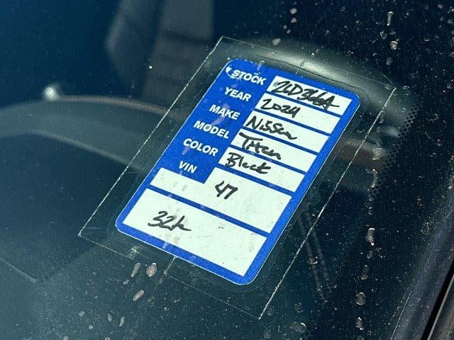 CARFAX One-Owner. Clean CARFAX.This 2024 Nissan Titan Platinum Reserve in Super Black comes with the following features: 5.6L V8 DOHC 32V LEV3-ULEV70 400hp 9-Speed Automatic 4WD Monotone Paint Package (Body Color Front Bumper, Body Color Overfenders, and Body Color Rear Bumper), Moonroof Package, Platinum Reserve Utility Package, Platinum Utility Package (TITAN Box), 12 Speakers, 3.692 Axle Ratio, 4-Wheel Disc Brakes, ABS brakes, Air Conditioning, Alloy wheels, AM/FM radio: SiriusXM, Apple CarPlay/Android Auto, Auto High-beam Headlights, Auto tilt-away steering wheel, Auto-dimming door mirrors, Auto-dimming Rear-View mirror, Automatic temperature control, Bed Assist Grip, Blind Spot Warning, Brake assist, Chrome Running Boards, Compass, Delay-off headlights, Door Sill Kick Plates, Driver door bin, Driver vanity mirror, Dual front impact airbags, Dual front side impact airbags, Electronic Stability Control, Emergency communication system: NissanConnect Services, Front anti-roll bar, Front Bucket Seats, Front Center Armrest, Front dual zone A/C, Front fog lights, Front reading lights, Front wheel independent suspension, Fully automatic headlights, Garage door transmitter: HomeLink, Genuine wood dashboard insert, Genuine wood door panel insert, Heated & Cooled Front Captain's Seats, Heated door mirrors, Heated front seats, Heated rear seats, Heated steering wheel, Illuminated entry, Knee airbag, Leather Shift Knob, Leather steering wheel, Logo Light, Low tire pressure warning, Memory seat, Navigation system: NissanConnect with Navigation and Services, NissanConnect Services Powered By SiriusXM, Occupant sensing airbag, Outside temperature display, Overhead airbag, Overhead console, Panic alarm, Passenger door bin, Passenger vanity mirror, Platinum Illuminated Kick Plate, Platinum Reserve Mud Flaps, Power door mirrors, Power driver seat, Power passenger seat, Power steering, Power windows, Premium Leather-Appointed Seat Trim, Radio data system, Radio: NissanConnect w/Navigation, Rain sensing wipers, Rear anti-roll bar, Rear reading lights, Rear seat center armrest, Rear step bumper, Rear window defroster, Remote keyless entry, Security system, Speed control, Speed-sensing steering, Speed-Sensitive Wipers, Split folding rear seat, Steering wheel memory, Steering wheel mounted audio controls, Tachometer, Telescoping steering wheel, Tilt steering wheel, Traction control, Trip computer, Turn signal indicator mirrors, USB Charging Cables, Variably intermittent wipers, Ventilated front seats, Voltmeter, and Wheels: 20" x 8" Dark Painted & Machined Clad.Priced below KBB Fair Purchase Price!*** Let the team at Peters introduce you to an entirely new kind of car-buying experience. Call us at 877-615-3187. **NATIONWIDE DELIVERY AVAILABLE**