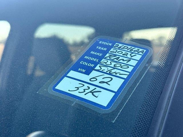 CARFAX One-Owner. Clean CARFAX.This 2024 Ram 2500 Big Horn in Billet Silver Metallic Clearcoat comes with the following features: 6.4L V8 8-Speed Automatic 4WD Level 1 Equipment Group (2 Way Rear Headrest Seat, 2nd Row In Floor Storage Bins, 4 Way Front Headrests, 40/20/40 Split Bench Seat, 4G LTE Wi-Fi Hot Spot, 8.4" Touchscreen Display, Apple CarPlay, Auto Power-Folding Mirrors, Big Horn IP Badge, Black Exterior Mirrors, Bluetooth® Handsfree Phone & Audio, Center Hub, Connectivity - US/Canada, Dual Glove Boxes, Exterior Mirrors Courtesy Lamps, Exterior Mirrors w/Heating Element, Exterior Mirrors w/Supplemental Signals, Foam Bottle Insert (Door Trim Panel), Footwell Courtesy Lamp, For Details, Visit DriveUconnect.com, For More Info, Call 800-643-2112, Forward & Reverse Utility Lights, Front Armrest w/Cupholders, Front Center Seat Cushion Storage, Front Fog Lamps, Front Seat Back Map Pockets, Global Telematics Box Module (TBM), Glove Box Lamp, Google Android Auto, GPS Antenna Input, Integrated Center Stack Radio, Integrated Voice Command w/Bluetooth®, Leather Wrapped Steering Wheel, Locking Lower Glove Box, Manual Adjust 4-Way Front Passenger Seat, Mirror Running Lights, Power 2-Way Driver Lumbar Adjust, Power Adjust 8-Way Driver Seat, Power Adjust Mirrors, Power Adjustable Convex Aux Mirrors, Power Heated Fold Telescope Mirrors, Power Telescoping Mirrors, Rear 60/40 Folding Seat, Rear Dome w/On/Off Switch Lamp, Remote USB Port - Charge Only, Selectable Tire Fill Alert, SiriusXM Radio Service, SiriusXM Satellite Radio, Steering Wheel Mounted Audio Controls, Storage Tray, and Wheels: 18" x 8.0" Polished Aluminum), Quick Order Package 2GZ Big Horn, Snow Chief Group (Anti-Spin Differential Rear Axle, Auxiliary Switches Prep, Clearance Lamps, Dash Pass Thru Wire Circuits, and I/P Mounted Auxiliary Switches), Sport Appearance Package (Black Interior Accents, Body Color Door Handles, Body Color Grille Surround, Painted Front Bumper, Painted Rear Bumper, ParkSense Front/Rear Park Assist System, and Sport Decal), 12" Touchscreen Display, 220 Amp Alternator, 3.73 Axle Ratio, 4-Wheel Disc Brakes, 6 Speakers, 9 Alpine Speakers w/Subwoofer, ABS brakes, Active Noise Control System, Air Conditioning, Air Conditioning ATC w/Dual Zone Control, Alexa Built-In, All R1 High Radios, All Radio Equipped Vehicles, Brake assist, Bumpers: chrome, Center Stack Storage Drawer, Cloth 40/20/40 Bench Seat, Compass, Connected Travel & Traffic Services, Delay-off headlights, Disassociated Touchscreen Display, Driver door bin, Dual Alternators Rated At 380 Amps, Dual front impact airbags, Dual front side impact airbags, Electronic Stability Control, Electronically Controlled Throttle, Emergency communication system: SiriusXM Guardian, Front anti-roll bar, Front Center Armrest w/Storage, Front License Plate Bracket, Front reading lights, Fully automatic headlights, GPS Navigation, HD Radio, Heated door mirrors, Illuminated entry, Low tire pressure warning, Manual Adjust 4-Way Driver Seat, Manufacturer's Statement of Origin, Occupant sensing airbag, Off-Road Information Pages, Outside temperature display, Overhead airbag, Overhead console, Panic alarm, ParkView Rear Back-Up Camera, Passenger door bin, Passenger vanity mirror, Power door mirrors, Power steering, Power windows, Premium Cloth 40/20/40 Bench Seat (DISC), Radio data system, Radio: Uconnect 3 w/5" Display, Radio: Uconnect 5 Nav w/12.0" Display, Radio: Uconnect 5 W w/8.4" Display, Rear anti-roll bar, Rear Folding Seat, Rear seat center armrest, Rear step bumper, Rear Wheelhouse Liners, Remote keyless entry, Remote Start System, SiriusXM w/360L, Speed control, Tachometer, Tilt steering wheel, Tip Start, Tow Hooks, Traction control, Trailer Tow Pages, Trip computer, Turn signal indicator mirrors, Variably intermittent wipers, Voltmeter, and Wheels: 18" x 8.0" Steel Chrome ClaD.*** Let the team at Peters introduce you to an entirely new kind of car-buying experience. Call us at 877-
