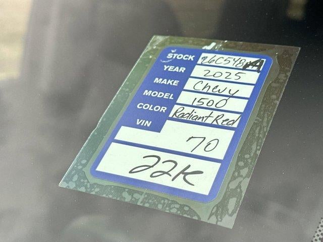 CARFAX One-Owner. Clean CARFAX.This 2025 Chevrolet Silverado 1500 LTZ in Radiant Red Tintcoat comes with the following features: 3.0L I6 10-Speed Automatic 4WD High Capacity Suspension Package, LTZ Convenience Package (2 USB Data Ports, Floor Mounted Center Console, Power Tilt & Telescoping Steering Column, Premium Bose 7-Speaker Sound System, Ventilated Driver & Front Passenger Seats, and Wireless Charging), LTZ Convenience Package II (2nd Row Heated Outboard Seats, Adaptive Cruise Control, Power Sliding Rear Window w/Rear Defogger, and Universal Home Remote), LTZ Plus Package, LTZ Premium Package (Power Sunroof), Preferred Equipment Group 1LZ (10-Way Power Driver Seat w/Lumbar, 10-Way Power Passenger Seat Adjuster w/Lumbar, 12.3" Multicolor Reconfigurable Digital Display, 120-Volt Bed Mounted Power Outlet, 120-Volt Interior Power Outlet, Auto-Dimming Inside Rear-View Mirror, Auto-Locking Rear Differential, Bluetooth® For Phone, Chrome Mirror Caps, Color-Keyed Carpeting Floor Covering, Deep-Tinted Glass, Driver Memory, Dual Rear USB Ports (Charge Only), Electric Rear-Window Defogger, Electronic Cruise Control, Front Frame-Mounted Black Recovery Hooks, Front LED Fog Lamps, Front Rain-Sensing Wipers, Front Rubberized Vinyl Floor Mats, Heated Driver & Front Outboard Passenger Seats, Heated Steering Wheel, Hitch Guidance w/Hitch View, In-Vehicle Trailering System App, Integrated Trailer Brake Controller, Keyless Open & Start, LED Cargo Area Lighting, OnStar Services Capable, Outside Heated Power-Adjustable Mirrors, Power Front Passenger Windows w/Express Up/Down, Power Front Windows w/Driver Express Up/Down, Power Rear Windows w/Express Down, Power Tailgate, Rear Rubberized-Vinyl Floor Mats, Rear Wheelhouse Liners, Remote Vehicle Starter System, SiriusXM w/360L Trial Subscription, Standard Tailgate, Steering Wheel Audio Controls, Teen Driver, Theft Deterrent System (Unauthorized Entry), Tire Pressure Monitoring System, Wi-Fi Hot Spot Capable, and Wrapped Steering Wheel), Safety Package (HD Surround Vision, Perimeter Lighting, Rear Cross Traffic Braking, Rear Pedestrian Alert, Safety Alert Seat, Trailer Camera Provisions, Trailer Side Blind Zone Alert, and Ultrasonic Front & Rear Park Assist), Technology Package (15" Diagonal Multicolor Head-Up Display, Bed View Camera, and Rear Camera Mirror), Trailering Package (Hitch Guidance), Up-Level Rear Seat w/Storage Package, Z71 Off-Road & Protection Package (All-Weather Floor Liner (LPO) (AAK) and Chevytec Spray-On Black Bedliner), Z71 Off-Road Package (Heavy-Duty Air Filter, Hill Descent Control, and Off-Road Suspension), 170 Amp Alternator, 220 Amp Alternator, 3.23 Rear Axle Ratio, 4-Wheel Disc Brakes, 7 Speakers, ABS brakes, Air Conditioning, Alloy wheels, AM/FM radio: SiriusXM with 360L, Apple CarPlay/Android Auto, Auto High-beam Headlights, Auto-dimming door mirrors, Auto-dimming Rear-View mirror, Automatic Emergency Braking, Automatic temperature control, Brake assist, Bumpers: chrome, Compass, Delay-off headlights, Driver door bin, Driver vanity mirror, Dual Exhaust w/Polished Outlets, Dual front impact airbags, Dual front side impact airbags, Electronic Stability Control, Electronic Transmission Range Selector Shifter, Emergency communication system: OnStar, Engine Block Heater, EZ Lift Power Lock & Release Tailgate, Following Distance Indicator, Forward Collision Alert, Front anti-roll bar, Front Bucket Seats, Front Center Armrest, Front dual zone A/C, Front fog lights, Front Pedestrian Braking, Front reading lights, Front wheel independent suspension, Fully automatic headlights, Heated door mirrors, Heated front seats, Heated steering wheel, Illuminated entry, IntelliBeam Automatic High Beam On/Off, Lane Keep Assist w/Lane Departure Warning, Low tire pressure warning, Memory seat, Multi-Flex Tailgate, Occupant sensing airbag, Outside temperature display, Overhead airbag, Overhead console, Panic alarm, Passenger door bin, Passenger vanity mirror, Perforated Leather
