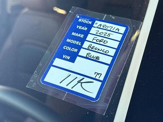 CARFAX One-Owner.This 2025 Ford Bronco Sport Outer Banks in Blue Metallic comes with the following features: 1.5L EcoBoost 8-Speed Automatic 4WD Equipment Group 300A, 4-Wheel Disc Brakes, 6 Speakers, ABS brakes, Air Conditioning, Alloy wheels, AM/FM radio: SiriusXM, AM/FM Stereo, Auto High-beam Headlights, Auto-dimming Rear-View mirror, Automatic temperature control, Brake assist, Compass, Delay-off headlights, Driver door bin, Driver vanity mirror, Dual front impact airbags, Dual front side impact airbags, Electronic Stability Control, Emergency communication system: SYNC 4 911 Assist, Four wheel independent suspension, Front anti-roll bar, Front Bucket Seats, Front Center Armrest, Front Driver/Passenger Seat Back Map Pockets, Front dual zone A/C, Front fog lights, Front License Plate Bracket, Front reading lights, Fully automatic headlights, Garage door transmitter, Heated door mirrors, Heated front seats, Heated steering wheel, Illuminated entry, Knee airbag, Low tire pressure warning, Memory seat, Occupant sensing airbag, Outside temperature display, Overhead airbag, Overhead console, Panic alarm, Passenger door bin, Passenger vanity mirror, Power door mirrors, Power driver seat, Power passenger seat, Power steering, Power windows, Premium Trimmed Front Bucket Seats w/Ebony/Roast, Radio data system, Rain sensing wipers, Rear anti-roll bar, Rear Parking Sensors, Rear reading lights, Rear seat center armrest, Rear window defroster, Rear window wiper, Remote keyless entry, Security system, SiriusXM, Speed control, Speed-sensing steering, Speed-Sensitive Wipers, Split folding rear seat, Steering wheel mounted audio controls, SYNC 4 w/Enhanced Voice Recognition, Tachometer, Telescoping steering wheel, Tilt steering wheel, Traction control, Trip computer, Variably intermittent wipers, and Wheels: 18" Ebony Black-Painted Aluminum.Priced below KBB Fair Purchase Price! 25/30 City/Highway MPG*** Let the team at Peters introduce you to an entirely new kind of car-buying experience. Call us at 877-615-3187. **NATIONWIDE DELIVERY AVAILABLE**